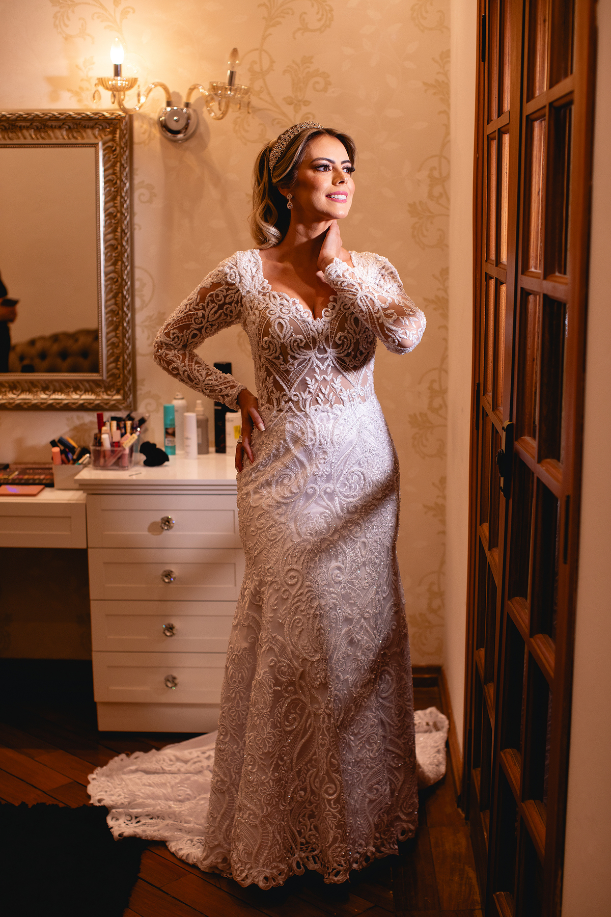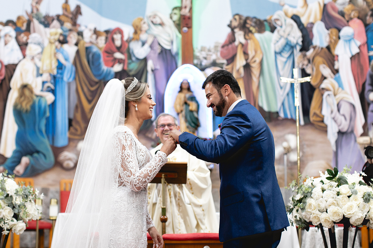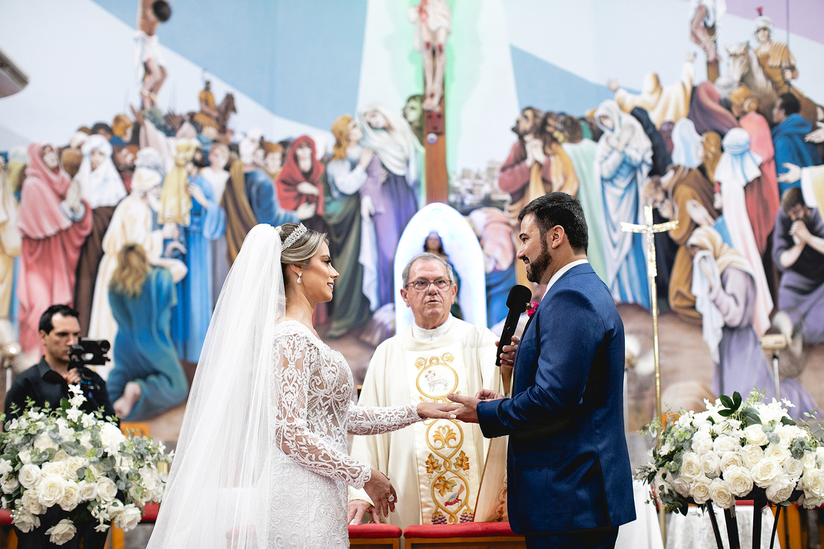 Começamos com os preparativos e muita festa com essas madrinha muito animadas, no espaço da Elaine Fonseca - Mirassol, depois partimos para a cidade de Tanabi - SP para a linda Igreja Matriz Nossa Senhora Conceição onde o casal recebe a presença de Deus no casamento unindo ainda mais os cônjuges. Quando o casal permite que o Senhor se faça presente no seu lar, são por Ele guiados nos momentos de dificuldades. Essa união entre o casal e, do casal com Deus, torna-se ainda mais fortalecida.