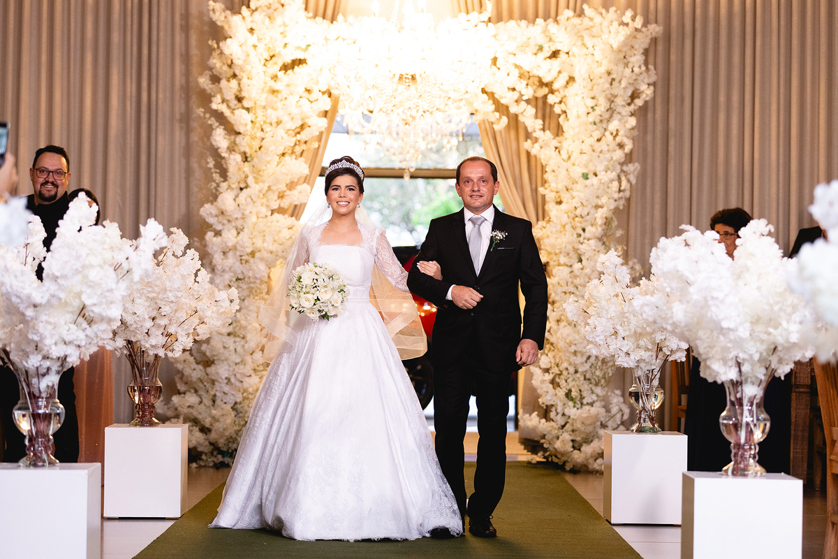 O casamento de Raissa e Vinícius foi um verdadeiro conto de fadas, repleto de emoção, carinho e uma troca constante de olhares que refletia todo o amor entre o casal. Realizado em uma das cidades mais encantadoras do interior de São Paulo, Guapiaçu, o evento aconteceu no renomado Buffet do Eder Marcelo, um espaço que tornou ainda mais especial o grande dia dos noivos.
