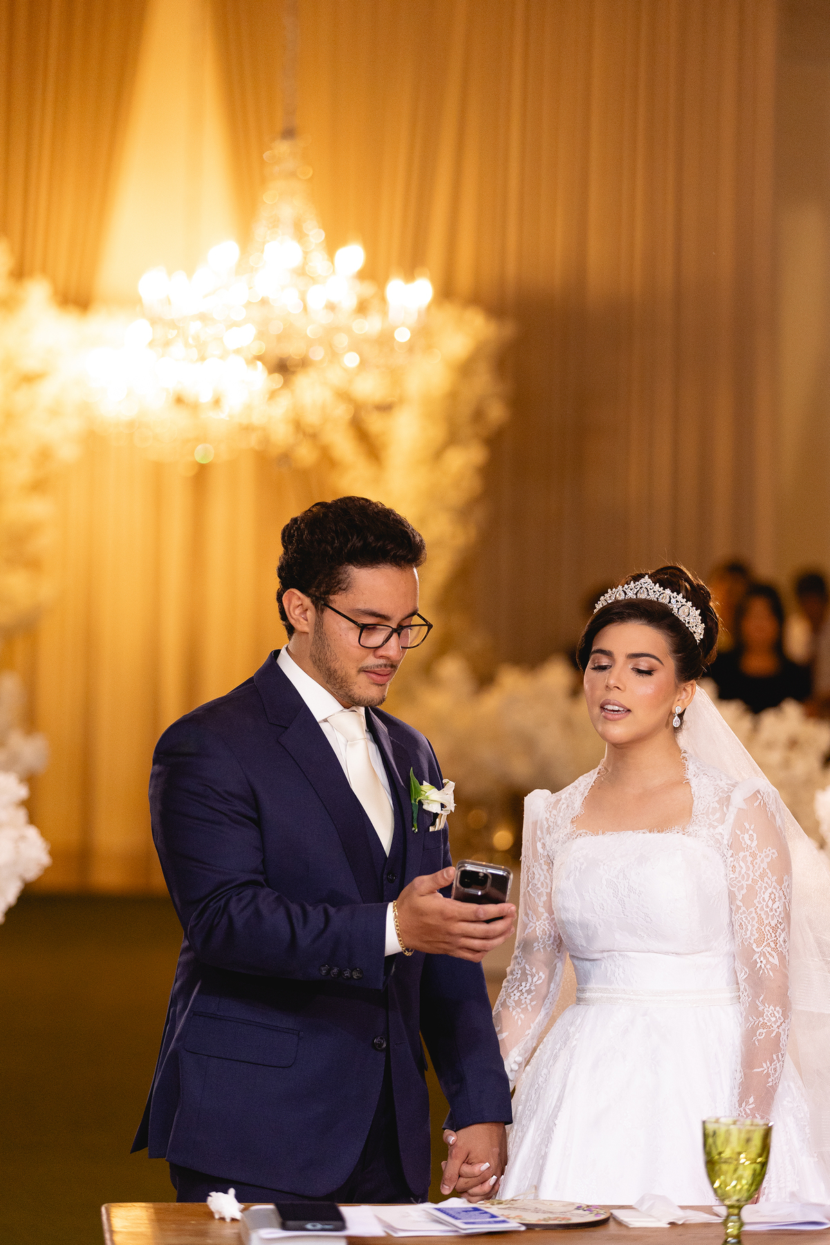 Desde o início da cerimônia, ficou claro que este não seria um casamento qualquer. Cada detalhe foi cuidadosamente pensado para criar um ambiente acolhedor e mágico. A decoração impecável, com flores delicadas e iluminação suave, combinou perfeitamente com a energia contagiante dos noivos e convidados. Raissa, deslumbrante em seu vestido de noiva, caminhou até o altar com um sorriso radiante, enquanto Vinícius a aguardava com os olhos brilhando de emoção.