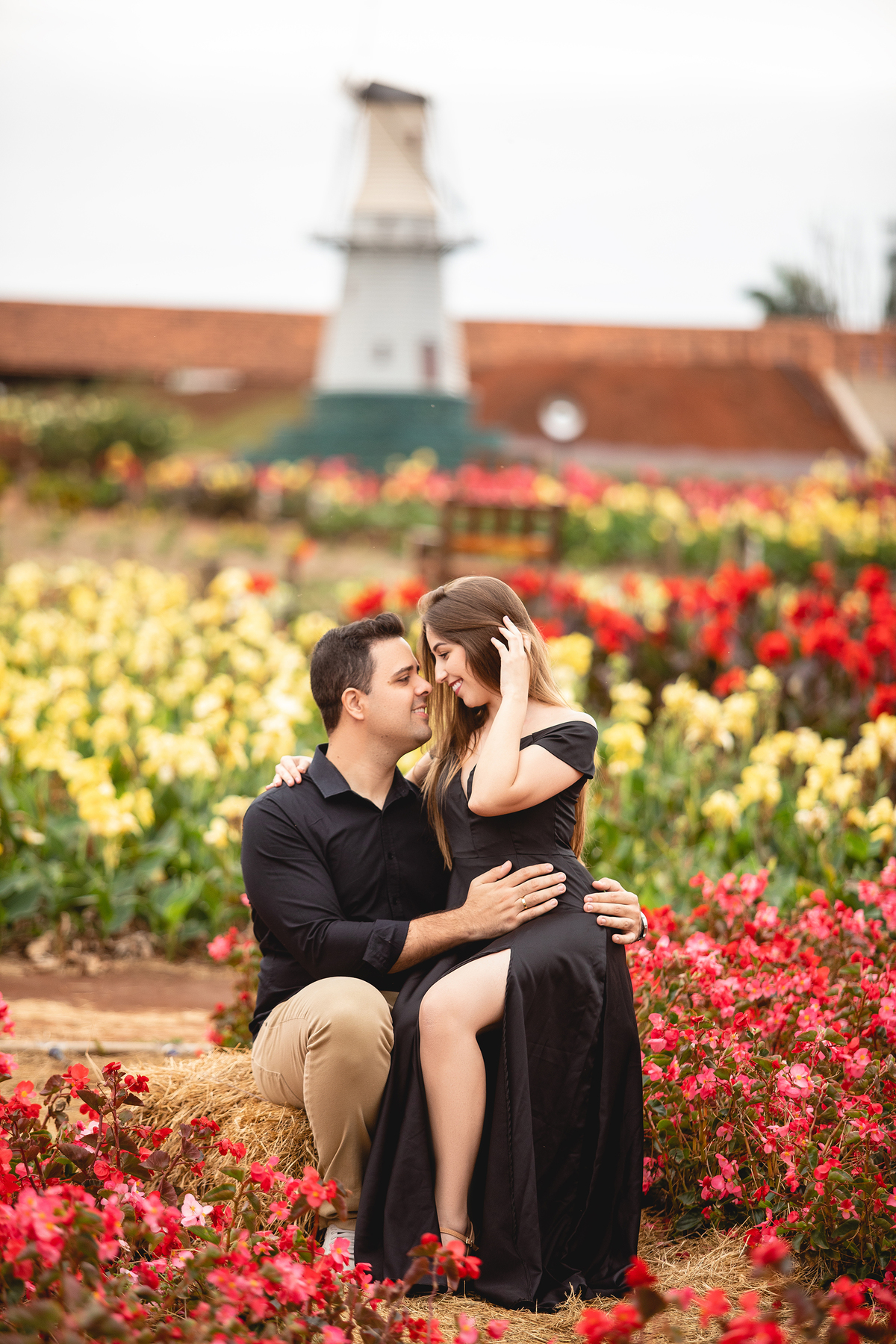 O casal escolheu Holambra, a Cidade Das Flores no interior de São Paulo, como cenário do seu ensaio pré casamento. Os noivos estavam super preocupados com as fotos pois no dia do ensaio o tempo esta todo fechado e a previsão era de muita chuva, mais quando chegamos tivemos uma bela surpresa, o tempo limpou e fizemos fotos incríveis. Holambra é uma cidade muito visitada para ensaios fotográficos, devido ao seus campos de flores lindos e coloridos.